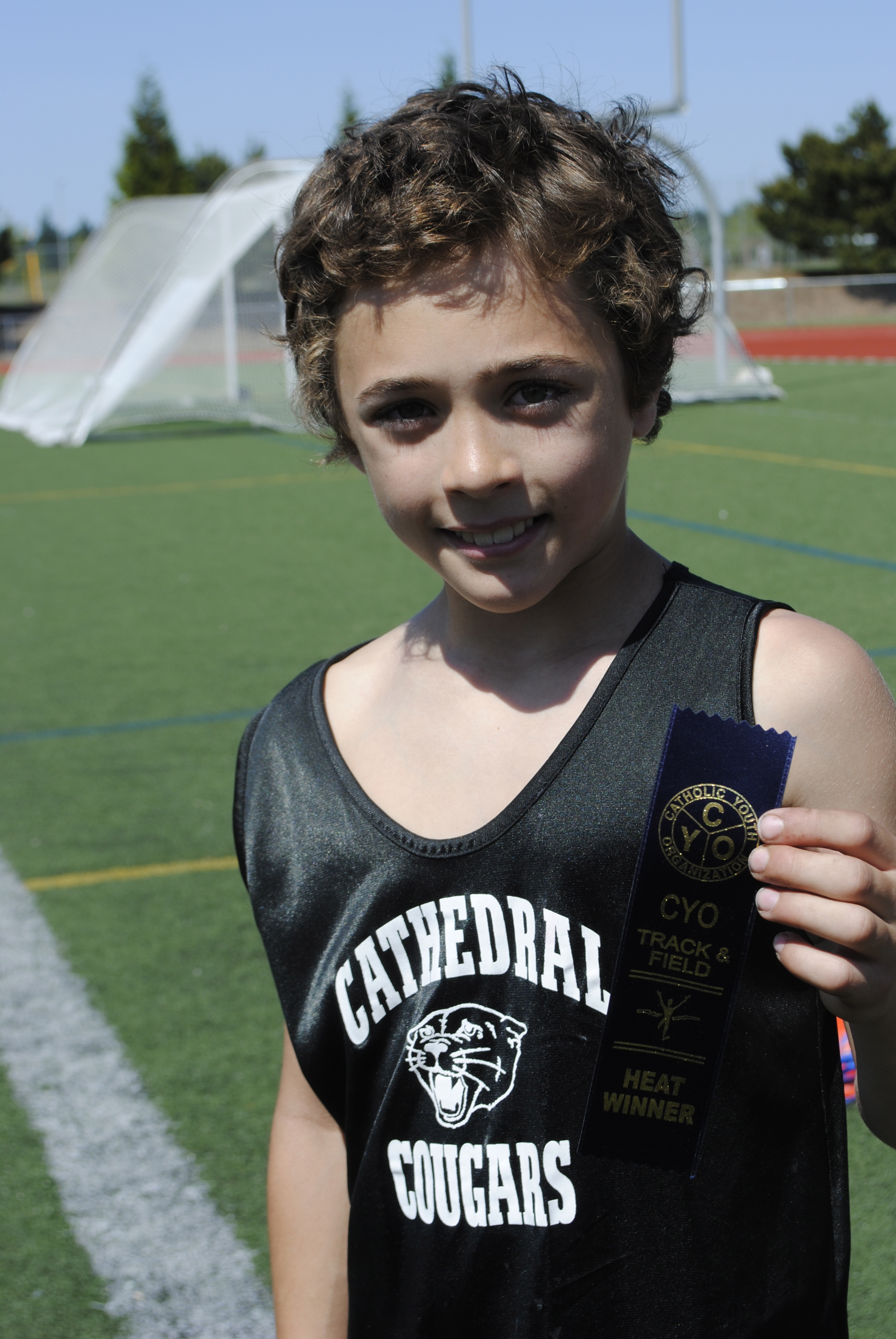 Kate Marron from CYO Club Madeleine won the 200 meter short distance sprint. Alexander Tate from CYO Club Cathedral edged out Andrew Alfieri from Valley Catholic in a very close race for the boys 200 Meter Championship.