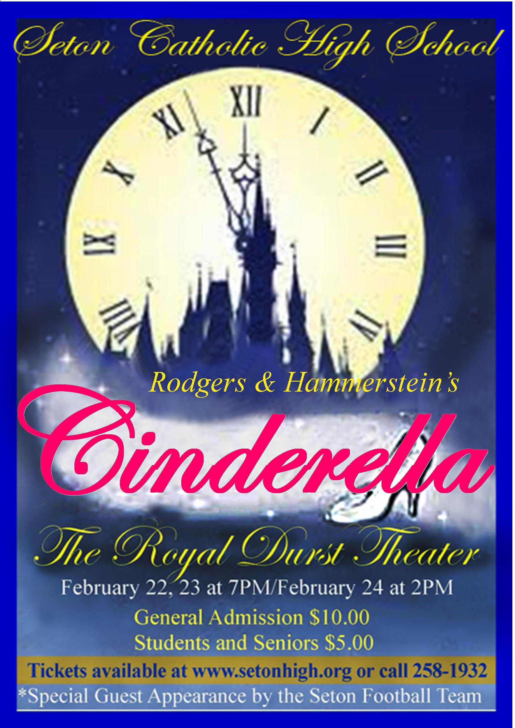 Madeleine Hunter, a senior at the school, with hopes of pursuing drama as a career choice following high school, will be playing the title role of Cinderella in this exciting musical production!  Prince Charming will be played by John Tomassi, also a talented actor and founding member, along with Hunter,  of the popular “Setonotes” a school a cappella  singing group.