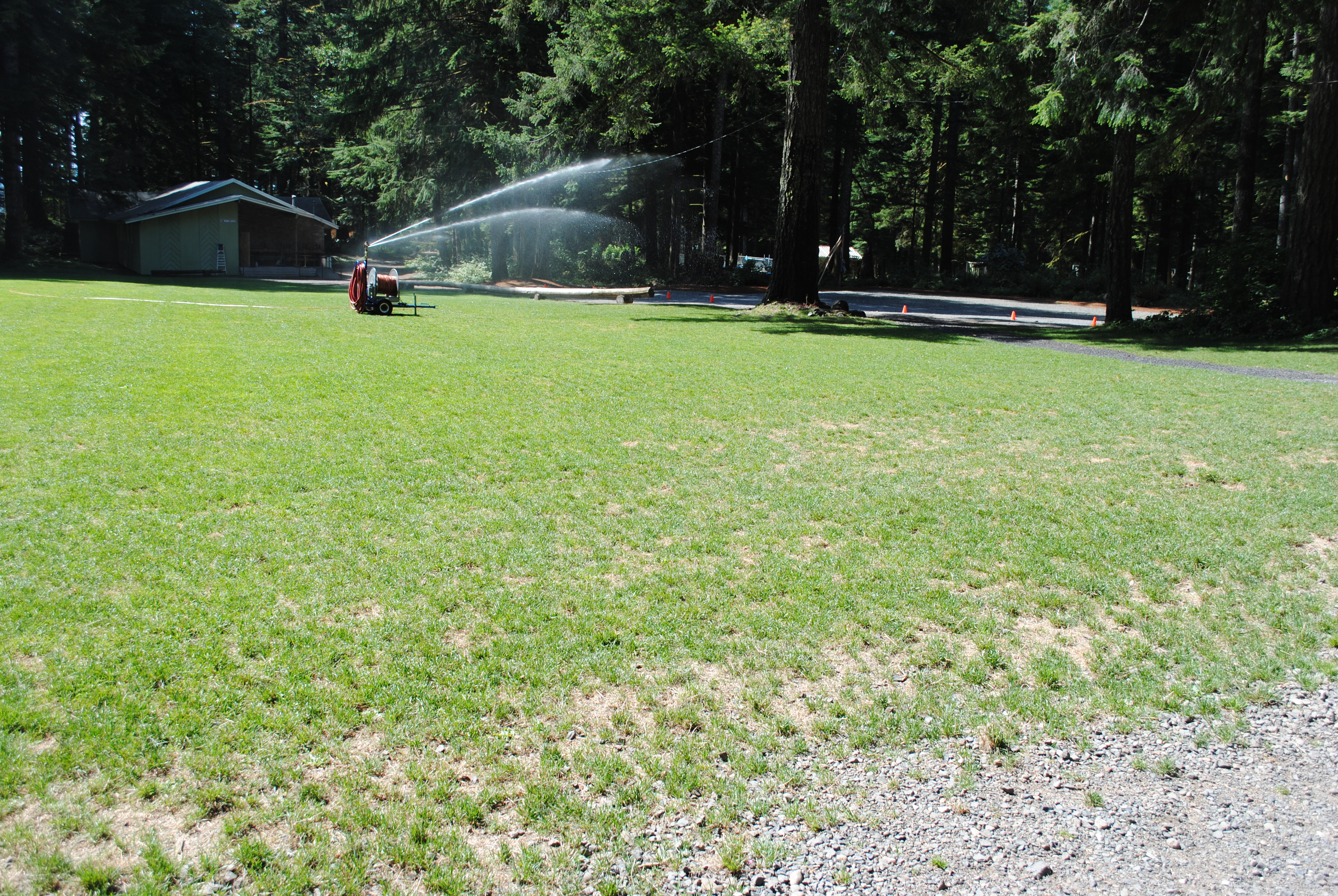 Watering the lawns, fertilizing, seeding, aerating and time will restore fields.