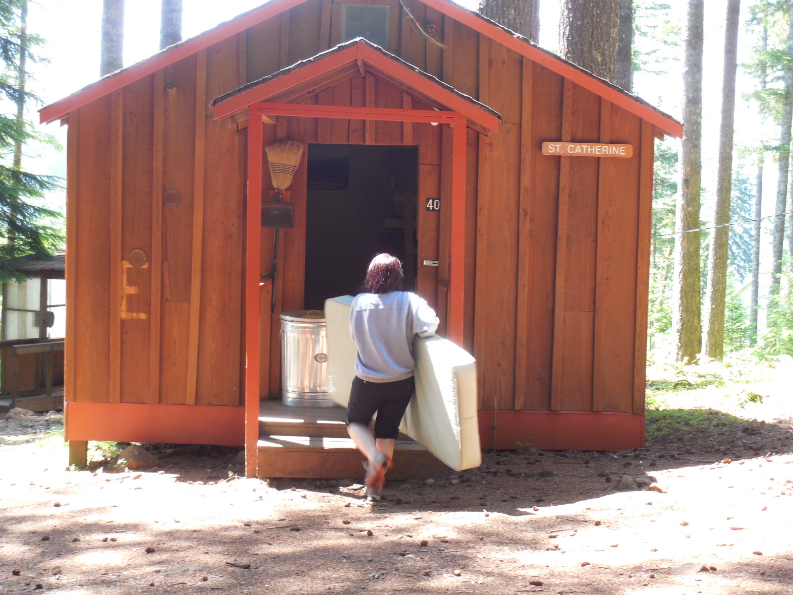 Karen von Borstel had a list of projects including putting new mattresses into the cabins so the staff helped move mattresses around. Other projects included getting Cougar Award ready for the Cougar Campfires.
