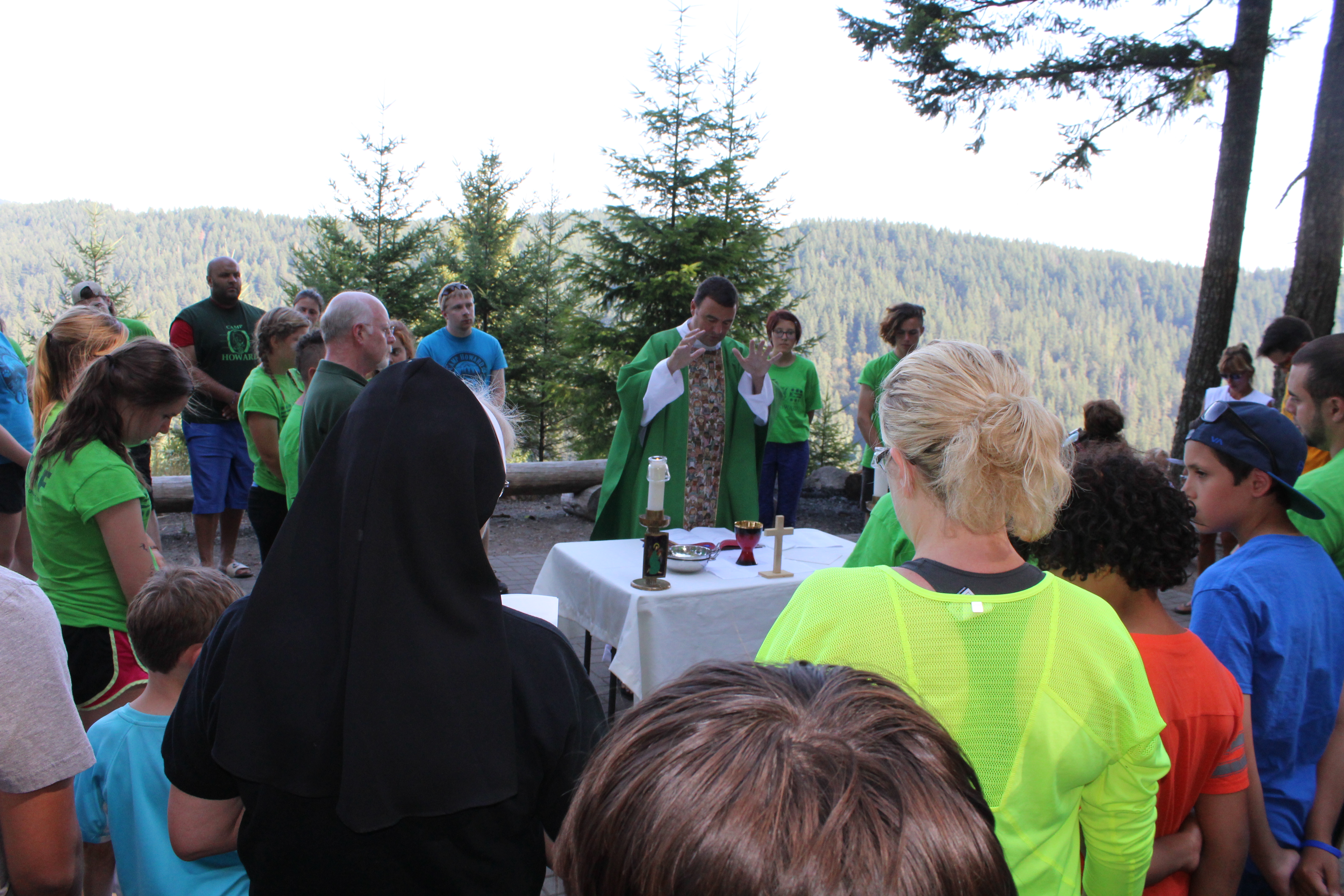 Family campers were treated to a fantastic “family themed” Mass last night as Fr. John Amsberry offered Mass Saturday night during the weekend of fun. Fr. John shared many wonderful thoughts on family but my favorite was his acronym: