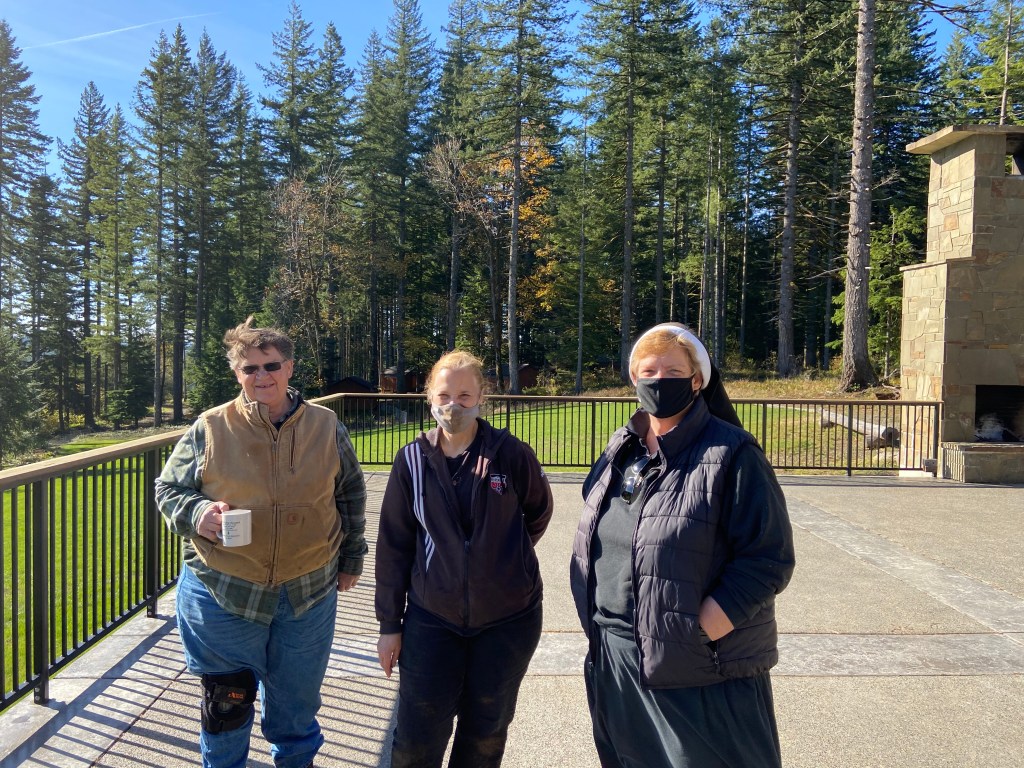 Herb Lommen, Announcer, Sr. Krista von Borstel, CYO, Erik Holstrom, Javelin Coach Valley Catholic CYO reunite at Valley Catholic. The trio worked many years together on campus as teachers. Erik Holstrom is still on staff.
