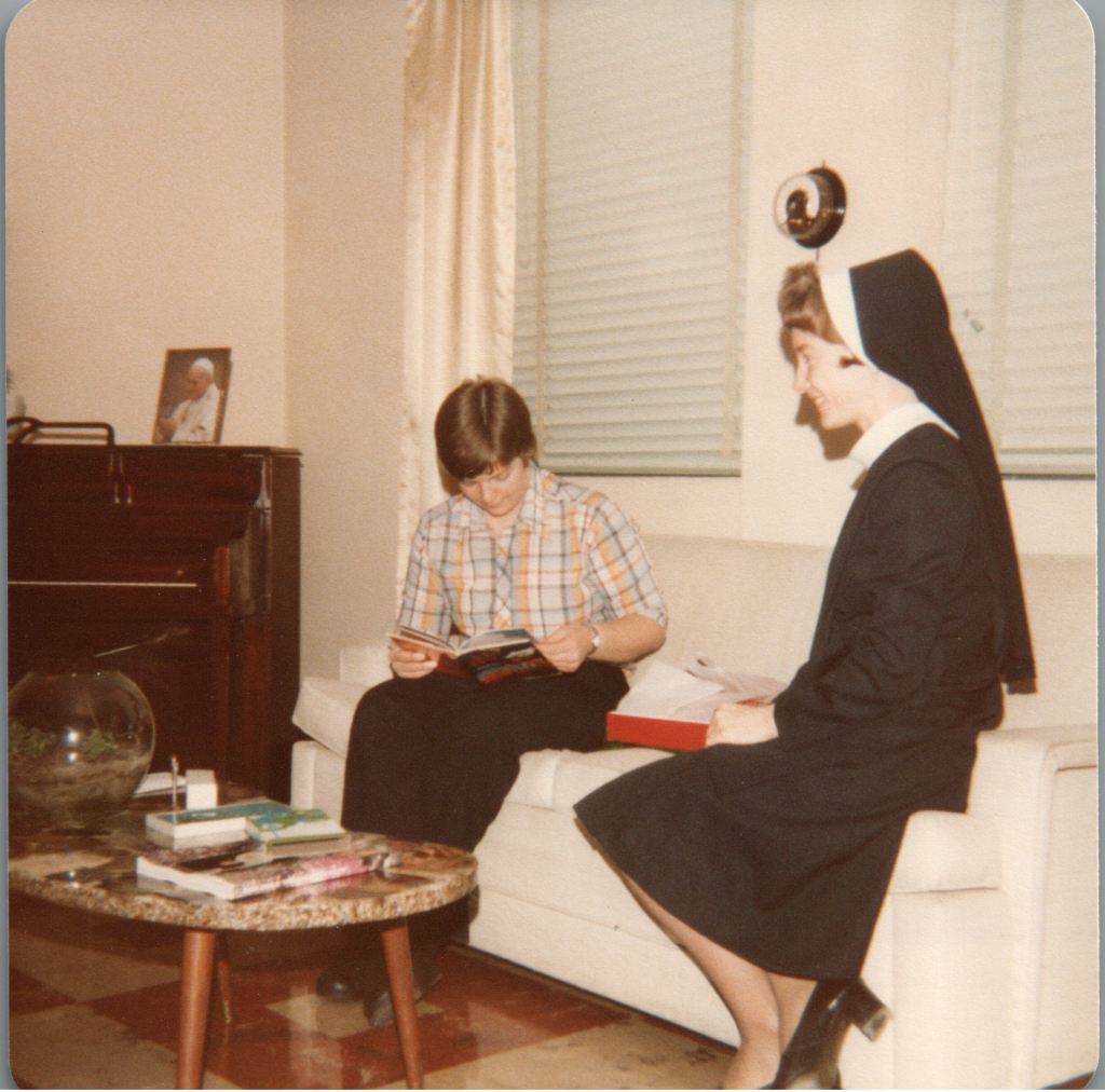 As a “candidate” I spent the next 6 months helping out wherever needed, was given a schedule of projects to accomplish and started at the very basic level of getting to know what this life was all about. I started wearing a black skirt and a white blouse. I did not wear a veil and I was not called, “Sister.”