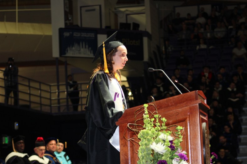 I was so happy to see Parkes was the University of Portland Valedictorian chosen to talk at commencement last week when I attended the exercises to support our graduating Sisters and to watch Sr. Charlene receive her award.