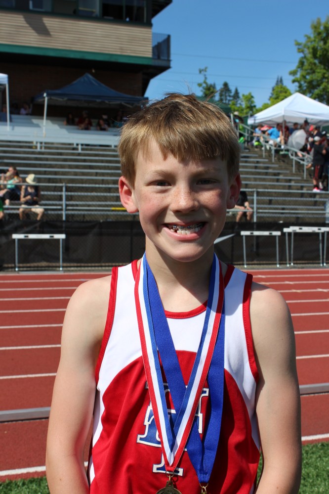 Track and Field began April 14th with four meets around the Greater Portland area including Valley Catholic, LaSalle, Seton Catholic and Liberty. With 1750 participants this year, three or four sites are scheduled each week to accommodate the participants. As we walked to the stadium at Valley Catholic, a race was concluding as team mates were shouting, “Go Bernie, Go!” Bernie won the 800 Cub Boys race!