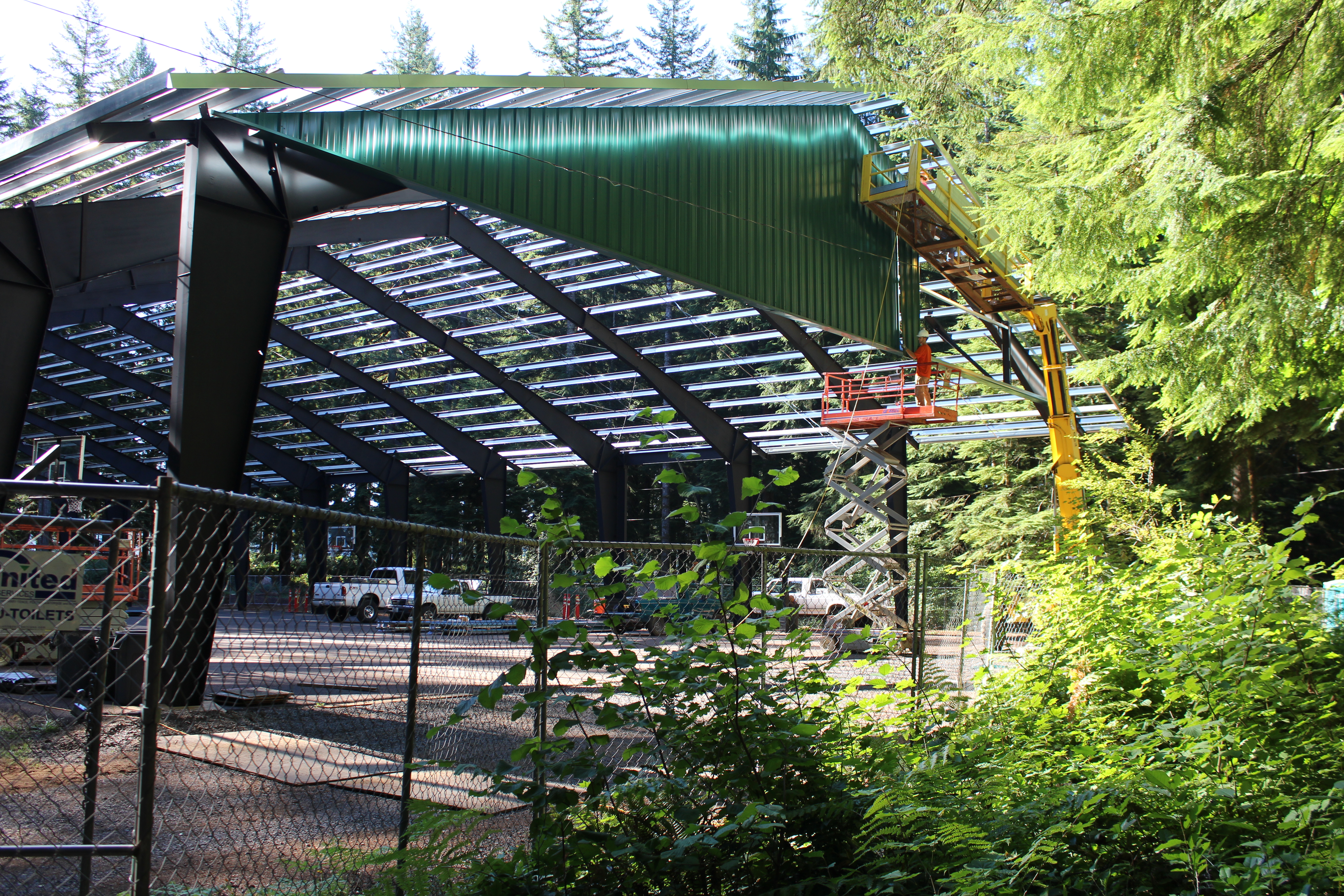 The Structure has been inspected and found to be excellent and ready for the front and top to be applied. The building is beautiful and fits well, nestled in the forest surrounded by Douglas Firs. It will be an absolute thrill to use it for camp in the future shading from the sun and shielding from the rain! Special thanks to the women of the Christ Child Society and Champions of Faith supporters!