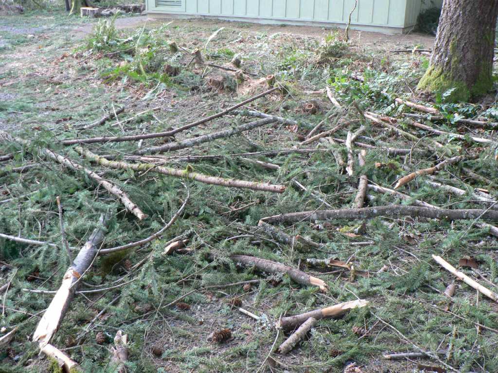 The forest floor carpeted with branches, twigs and needles at Camp Howard Winter 2008-09