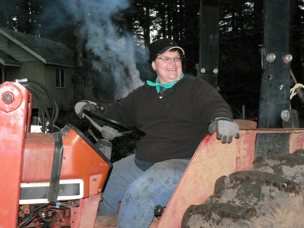 Karen in her element driving tractor to clear the roads at Camp Howard 2008-09