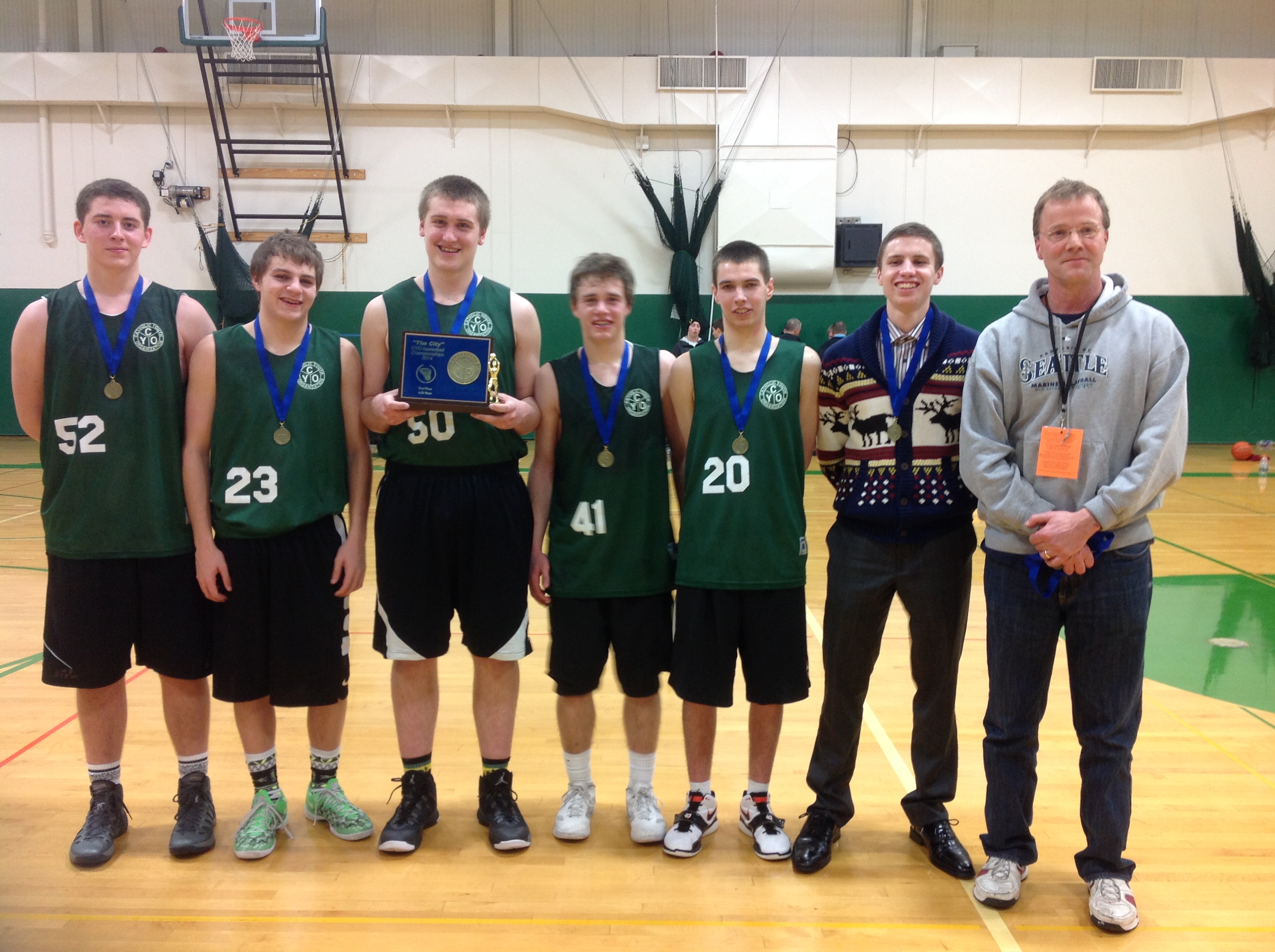 CYO Championships 2nd place Central Catholic Paddy Ellis 15, Joseph Wilson 45, Gunnar Vik, Cole Warner 22, Matt Hart 40, Michael Haines 24, Sam Gomez 25, Will Paustian 23, Cole Boileau 41, Dante Carnevalie. COACH Brian Vik, ASSISTANT COACH Jeff Paustian