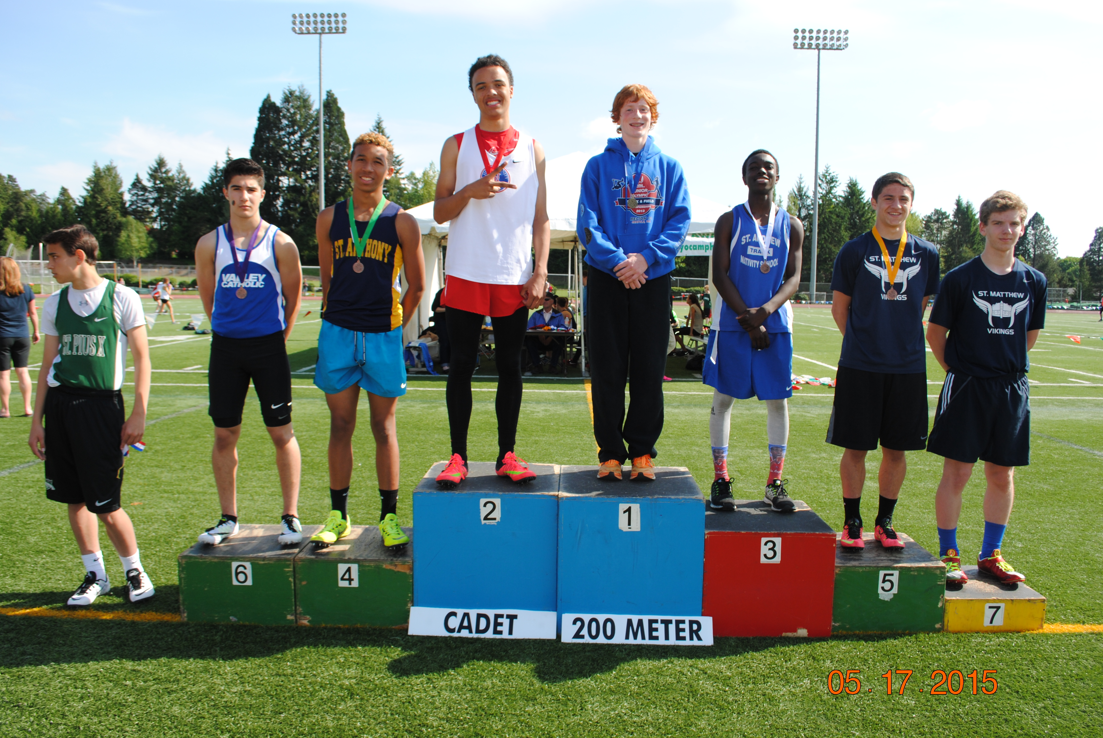 Winners in the Cadet  Boys 200 Meter Dash at the 2015 CYO Meet of Champions