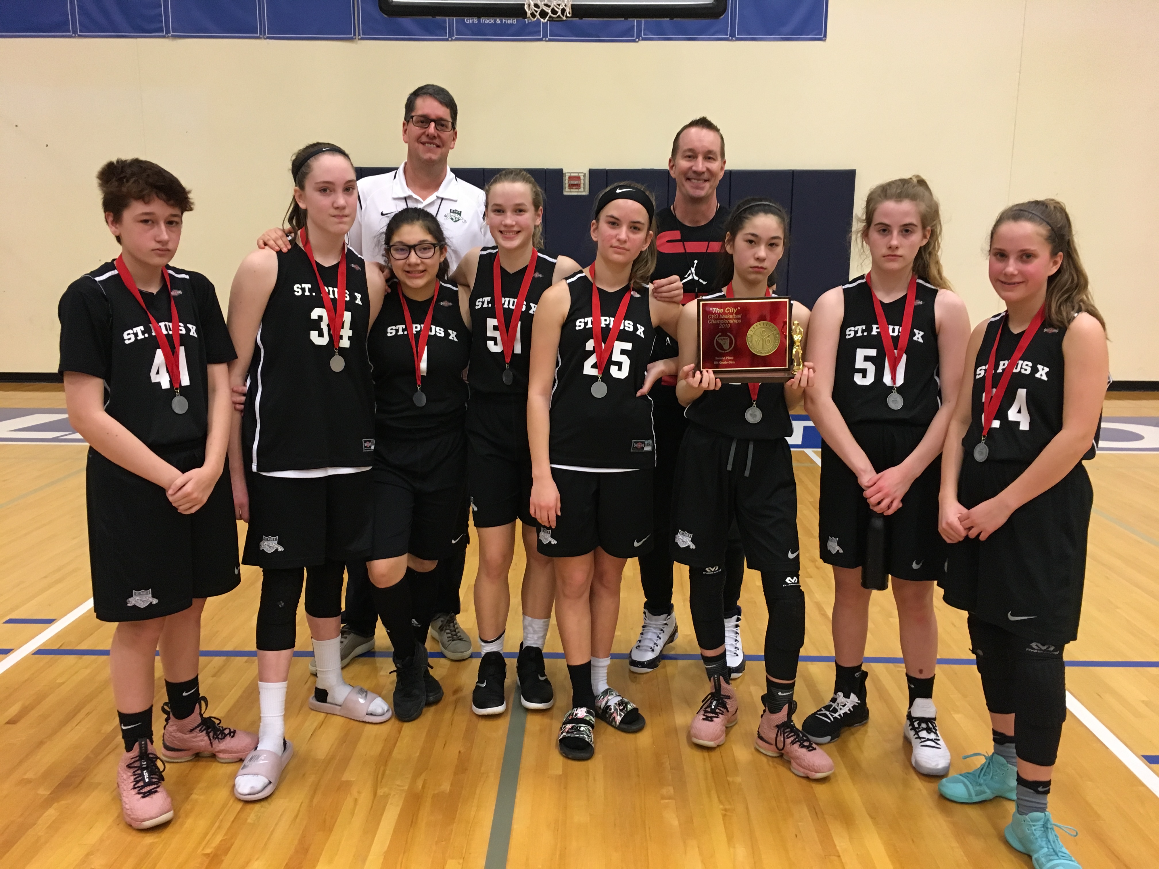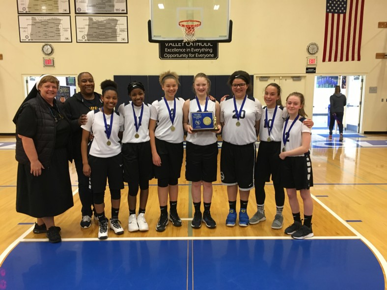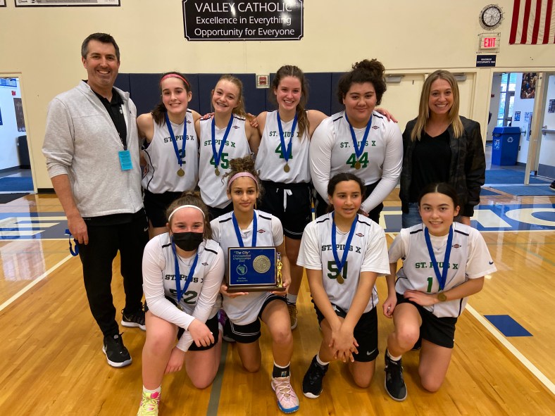 St. Pius X 8th Grade Girls place 1st in the CYO City Basketball Tournament March 13, 2022 at Valley Catholic High School